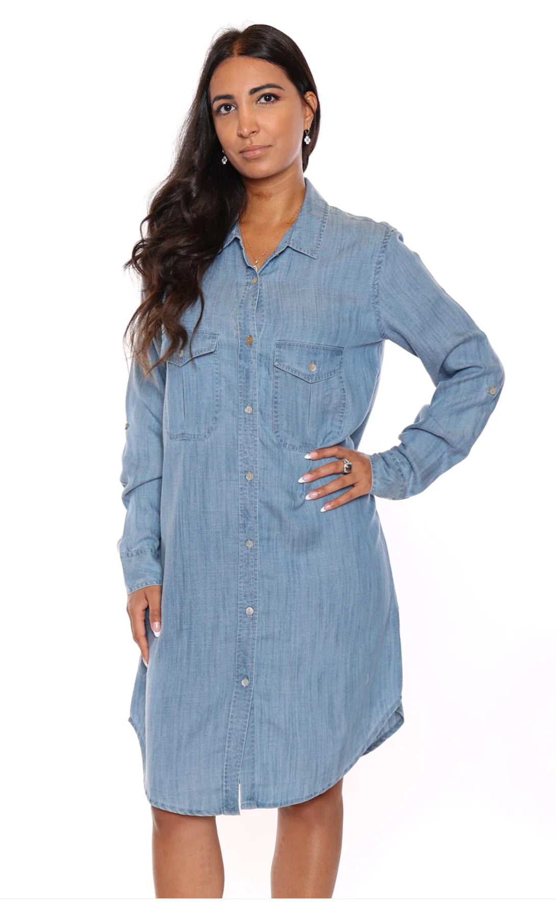 Papa, Vancouver, long sleeve, button up embroidered back dress.